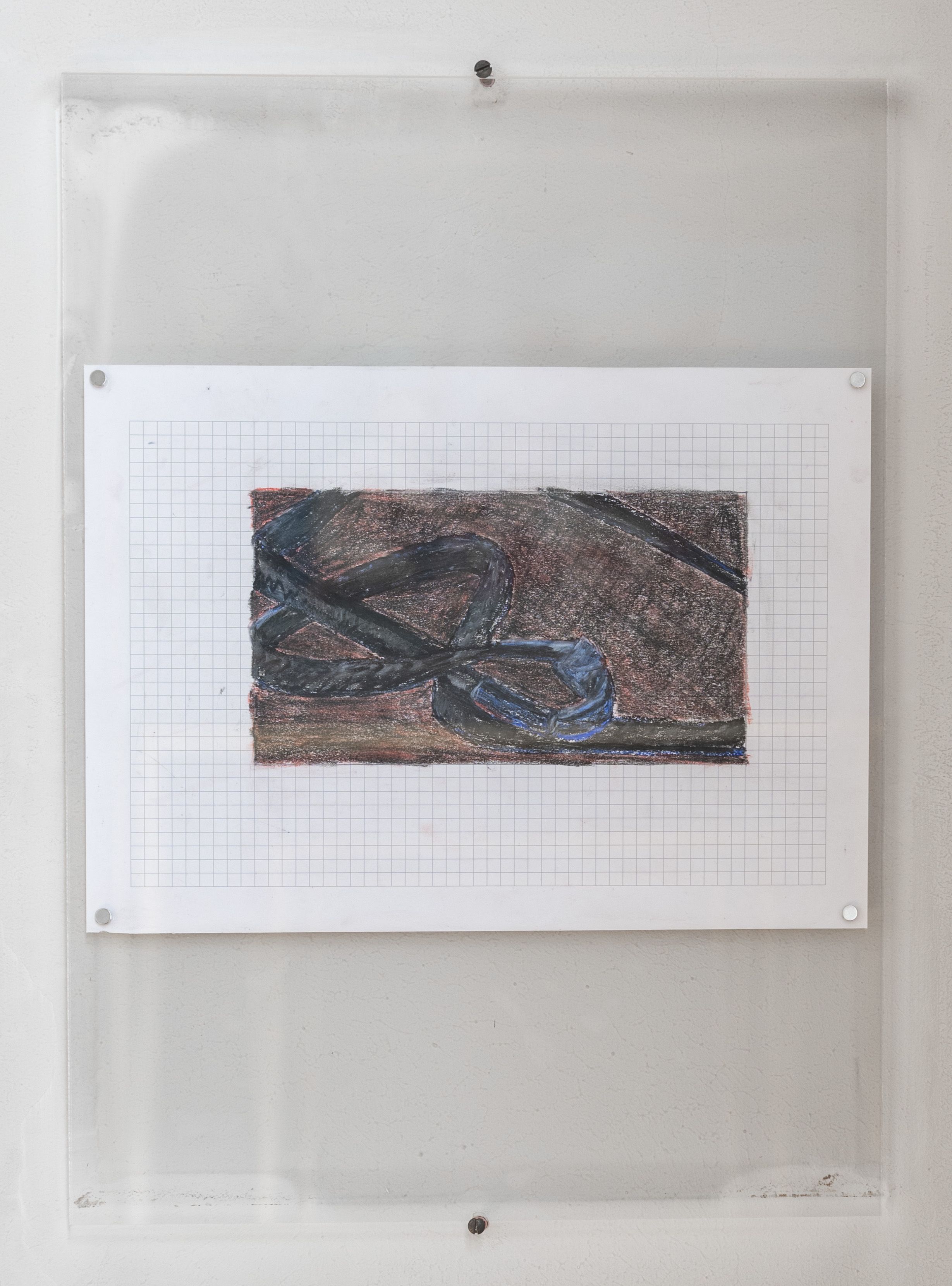 Würdest du mich züchtigen, 2023, oil crayon and pastel crayon on paper (21 x 28.7cm), acrylic glass (42 x 30cm), magnets