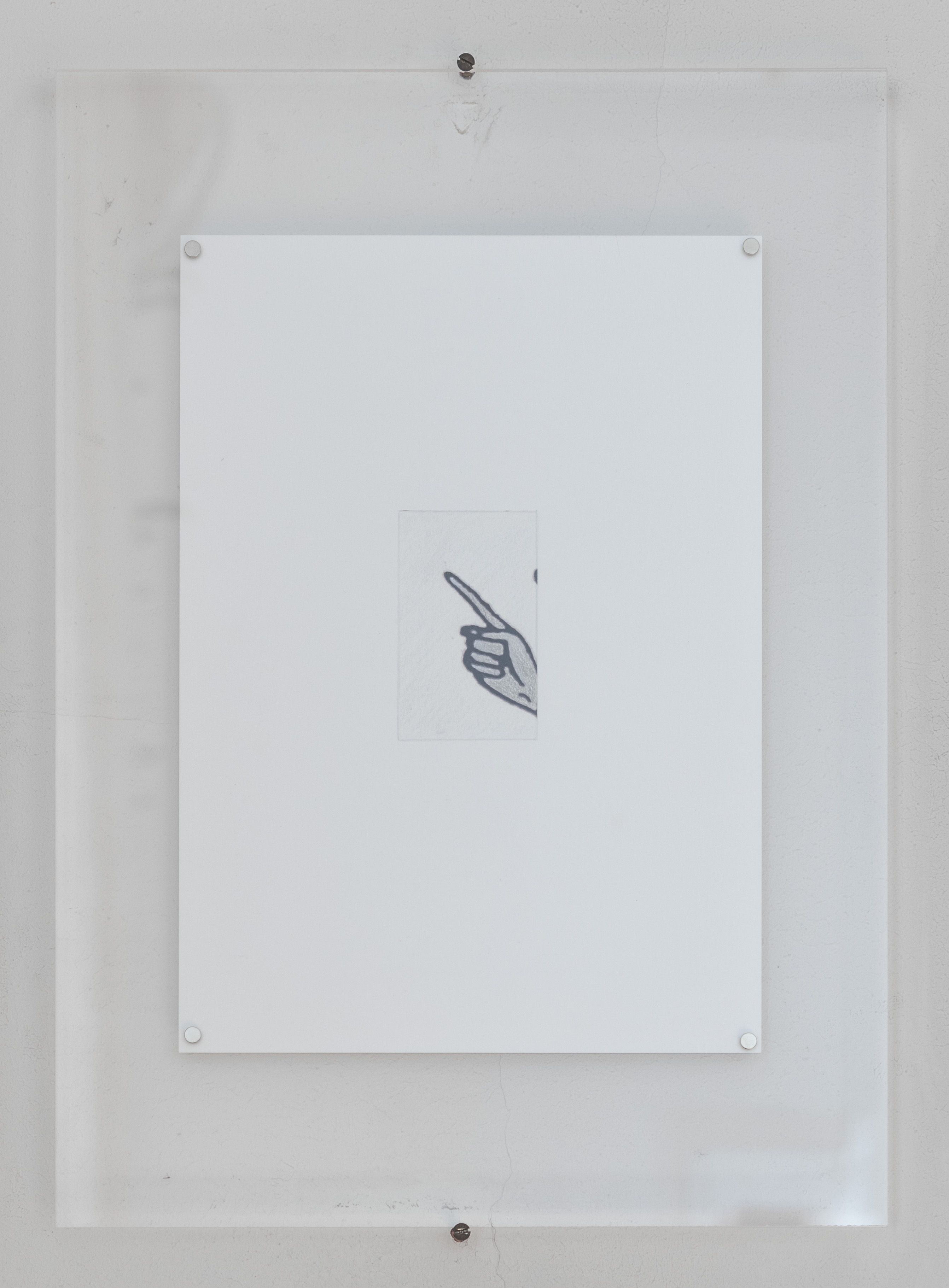 Panoptisches Händchen 2023, color pen and laser print on paper (29.7 x 21cm), acrylic glass (42 x 30 cm), magnets